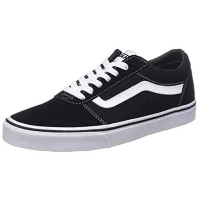 Ward Sneakers by Vans trainers: Men's signature low top black and white trainers, with a padded ankle collar for the ultimate comfy fit Legendary lace up canvas shoes: A smooth suede and stretchy canvas upper, plus a smooth midsole for lightweight cushioning Step up your footwear game with Vans: The perfect pair of authentic men's trainers, size 10, for a secure fit and effortless everyday style Wear when you want: Eye-catching sidestripe wide fit trainers, great for dress-down days at work or weekend casual wear Vans shoes: Off the wall since 1966. Discover iconic American apparel and trainers inspired by skateboard shoes and culture, blending old school designs with today’s trends