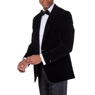 Mens Velvet Tuxedo Jacket Tailored Fit Formal Dinner Wedding Peak Lapel Blazer [BLZ STAN BLACK 44UK]