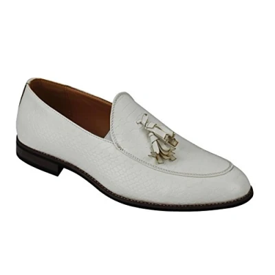 Mens Vintage Snakeskin Print Shiny Leather Tassel Loafers Smart Casual MOD Shoes[EU46,UK11.5,S32 K15,White]