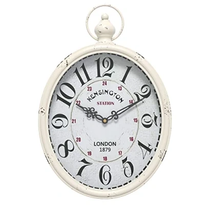Menterry Oval Retro Wall Clock, Rustic Vintage Style, White Antique Design, Battery Operated Silent Decor Large Clocks for Kitchen,Farmhouse,Office (15.5" H x 10.5" W)