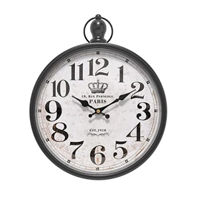 Menterry Retro Round Wall Clock. Black Vintage Antique Style Decor Clocks for Kitchen,Farmhouse,Bedroom,Bathroom,Office, (11.8" H x 9.3" W)