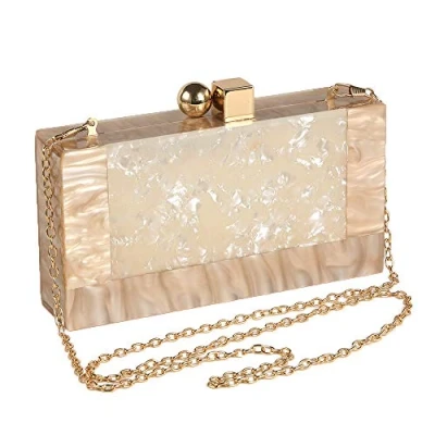 [Glamorous Design] Made of environmental acrylic. Designed to look like the shell, this structured box clutch beautifully shines with swirls of iridescent luster. [Chic Clasp] Interesting round and sequare megnetic metal clasp opening make it look elegant and delicate. [Durable Interior] High quality soft and smooth cotton lined interior to protect your things from damage. [Multiple Functions] Two selective detatchable chain:1 snake chain and 1 o chain for your to choose to make your clutch special for you. This bag can be used as a clutch purse, shoulder bag, and crossbody bag. International products have separate terms, are sold from abroad and may differ from local products, including fit, age ratings, and language of product, labeling or instructions.