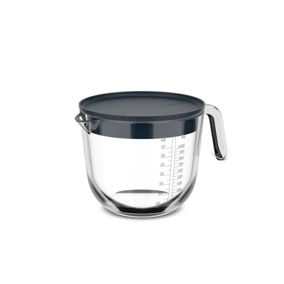 Mepal Glass Measuring Jug with Lid Chef it Easy to Read Engraved Scale Microwave & Oven Safe (Without Lid) High Quality Dishwasher 1000 ml Navy