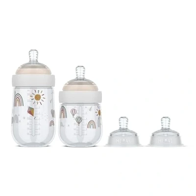 Mepal Starterset Baby Bottles Mio 3 Piece Anti Colic Spiral Design Prevents Blocked Teat Medical Grade Silicone 165 + 240 ml Sunshine & Rainbow