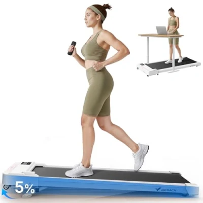 【5% Manual Incline, Doubling Fat Burn】The walking pad with a manually adjustable 5% incline increases the intensity of your workout and promotes fat burning. Perfect for home workouts with our treadmill for home, allowing you to burn more calories in less time. 【Wide Running Deck & High Load Capacity】This walking pad features a spacious 40×95 cm running surface with a weight capacity of 136 kg, delivering optimum stability and safety during workouts. Its compact dimensions (110 x 49 x 11 cm) and lightweight of just 17.7 kg make it not only space-saving but also particularly easy to move thanks to its integrated wheels. This makes it easy to store under the bed or sofa – the perfect space-saving treadmill desk for home offices or small spaces. 【5-Layer Cushioning System | Optimal Joint Protection】The advanced 5-layer cushioning system effectively absorbs shock forces and relieves pressure on knees and ankles. This treadmill is ideal for gentle walking and jogging – especially recommended for people with joint sensitivity. 【3-in-1 Multi-Mode & Ultra-Quiet Operation】Choose between three functions: for your desk (2-3 km/h for concentrated work), brisk walking (3-4 km/h), and jogging (4-6 km/h). The powerful 3.0 HP motor operates at less than 45 dB – perfect for your walking pad or home office without disturbances. A high-quality treadmill for home use for flexible use. 【Merach App with Over 1,000 Training Classes】Get access to more than 1,000 guided workouts – from fat-burning intervals to relaxed walking. Perfect for variety and motivation with your walking pad, which can be easily integrated into your home office routine.