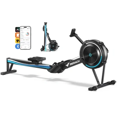 【Full-Body Low-Impact Workout】Indoor rowing provides an effective full-body, low-impact exercise. In just 20 minutes, you can engage over 86% of your major muscle groups, all without needing to go outdoors 【Air Resistance System】10-level air resistance system with up to 50 kg of peak resistance, catering to various workout intensities 【Designed for Taller Users】 Extended track with durable, high-quality steel construction, supports up to158 kg, ensuring both safety and comfort during workouts 【Proper Rowing Posture】 Adjustable footplates allow you to fine-tune leg positioning and seating alignment, maintaining pelvic alignment and a natural posture for effective workouts while minimizing injury risk 【Professional Performance Monitor】 Delivers accurate workout data and connects via Bluetooth to the Merach APP. Includes a device holder for your smartphone or tablet 【Easy Assembly and Storage】90% pre-assembled for quick setup and immediate use. The foldable design allows vertical storage in two sections, maximizing space efficiency. Folded dimensions: 138*83*73 cm 【Package Includes】 R50 Air Rowing Machine, Performance Monitor, User Manual, all assembly tools, and clear instructions 【Seamless App Login & Wearable Connectivity】 Sign in instantly with Google. Sync heart rate data via Apple Watch or Garmin devices to track every session accurately and optimise your workout results.