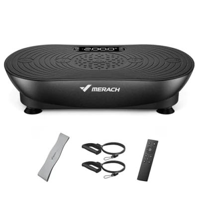 【45% Increased Frequency】 Featuring an entirely new architecture, this vibration plate boasts a 45% increase in vibration frequency, allowing for deeper fat burning and faster calorie expenditure. Enhanced power transmits vibrations throughout the body, maximizing muscle contraction and activation, promoting lymphatic drainage and blood circulation, and helping you quickly achieve your fitness goals. 【Advanced LED Touchscreen】 The upgraded Merach V33 vibration plate is equipped with an advanced LED touchscreen, offering greater sensitivity and convenience than traditional physical buttons. The larger, clearer display allows for easy data reading from any angle, and when used with the remote control, it provides a smooth and convenient operating experience. 【Enjoyable Fitness Experience】The vibration plate features a built-in speaker and Bluetooth connectivity, allowing you to connect to your smartphone to play music. Dynamic music rhythms help you immerse yourself in your workout, increasing motivation and extending workout time. 【Multiple Modes, Significant Results】The MERACH vibration plate exercise machine offers manual and automatic modes, 99 speed levels, 5 smart programs, and 2 elastic pull cords to help you achieve a full-body workout. Just 10 minutes a day can revitalize you, relieve stress, and help you easily achieve a perfect figure. 【Anti-slip, Quiet, and Easy to Store】 Four anti-slip suction cups on the bottom ensure stability, prevent slipping, and reduce noise. Silicone panel and durable ABS shell ensure comfort and lifespan. Its compact size makes it easy to carry and store.