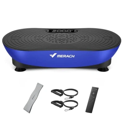 MERACH Vibration Plate for Weight Loss and Shaping, Exercise Machine with Enhanced Frequency,99 Speed Levels, Built in Bluetooth Speaker, LED Touchscreen (Blue)