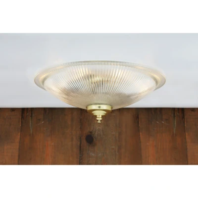 The Nicosa Shallow Halophane Light in polished brass brings a refined, elegant look to your space. Crafted from quality materials, this ceiling light adds both style and function to your interior decor.