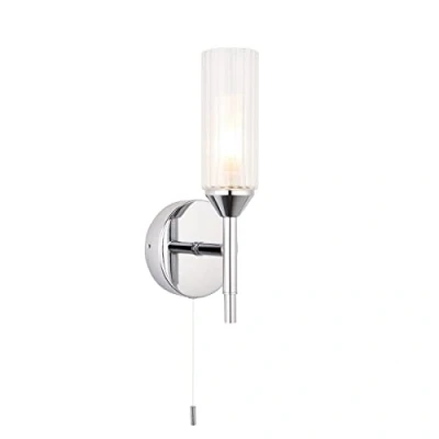 Merano Casoria Bathroom Wall Lamp in Chrome Plate with Ribbed Glass 3W Indoor Modern G9 Stylish Pull Cord Lighting IP44