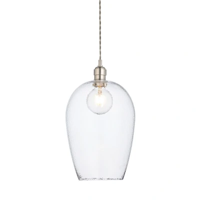 Merano Lighting Livorno Dome Pendant Ceiling Light Bright Nickel Plate Clear Hammered Glass