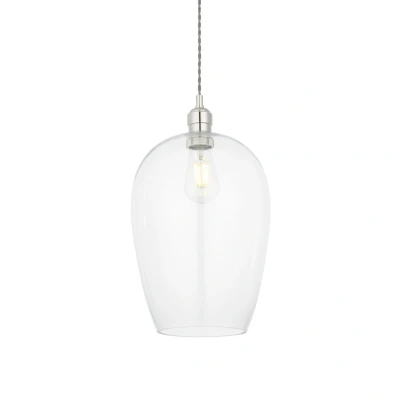 Let the light shine through with the Livorno Large 1-Light Bright Nickel Plate and Clear Glass Pendant Ceiling Lamp. The simple shade will add sparkling style to any space while the bit of chrome is a contemporary touch perfect for use over a dining table, island, or in the entryway to welcome guests.