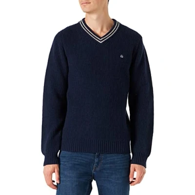 Merc of London Men's Brecon Pullover Sweater, Navy Blue, X Small