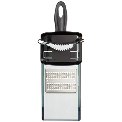 QUALITY CONSTRUCTION: Double-edged blades are made from high carbon steel to be durable, sharp, and adjustable, and integral hooks hold only to vessels, allowing for direct slicing into containers SUPERIOR DESIGN: Rubberized handle with protective hand guard provides secure, safe, and comfortable grip, and non-slip feet prevent movement while slicing BEST USE: These compact slicers provide safe and speedy slicing of fruits and vegetables in both directions, producing perfect, super fast julienne cuts EASY CARE: To maximize the performance and longevity of your Mercer products, carefully wash by hand with warm water and mild soap; rinse and dry completely with a soft towel. Do not place in dishwasher or submerge for long periods of time MERCER CULINARY: Mercer continues to introduce innovative, quality products allowing foodservice operations to run effectively and efficiently; perfect for professional use or the home cooking enthusiast