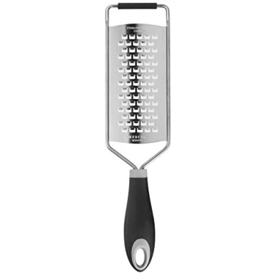 QUALITY CONSTRUCTION: Made with acid etched stainless steel blades for a super sharp cutting surface that stays sharp for longer; Includes snap on cover for safe storage and transportation SUPERIOR DESIGN: Rounded ergonomic handle offers comfort and a non-slip grip, and silicone stability bar adds another layer of safety by providing a non slip surface to rest on your work space BEST USE: The exacting manufacturing process of acid etching provides these graters with extremely sharp cutting edges, resulting in superior output when creating extra coarse, wide shavings EASY CARE: To maximize the performance and longevity of your Mercer products, carefully wash by hand with warm water and mild soap; rinse and dry completely with a soft towel. Do not place in dishwasher or submerge for long periods of time MERCER CULINARY: Mercer continues to introduce innovative, quality products allowing foodservice operations to run effectively and efficiently; perfect for professional use or the home cooking enthusiast