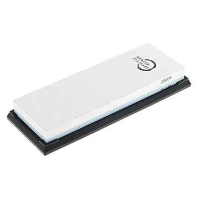 PREMIUM SHARPENING STONES: While Mercer knives are sharp out of the package, this sharpening stone will help keep your cutlery performing at peak levels; Larger size allows for a longer sharpening stroke and more complete blade edge coverage MATERIAL: Specially formulated premium grade corundum is manufactured with an advanced technology for superior results SMOOTHER SURFACES: Created using a new process to help you achieve sharper edges in less time, compared to other grit stones KNIFE MAINTENANCE: Keep your edges factory sharp with a fine finish; 1000 grit side for maintaining a very sharp edge, and 3000 grit side is excellent for finishing the sharpest edges with a polish SAFE SHARPENING: Silicone base gives you a secure surface for sharpening; Helps prevent damage to work surface, and safer storage.MERCER CULINARY: Mercer continues to introduce innovative, quality products allowing foodservice operations to run effectively and efficiently; perfect for professional use or the home cooking enthusiast
