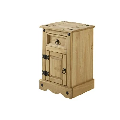 General description The Corona Narrow Pot Cupboard is expertly crafted from solid pine and hand waxed to preserve and enhance the natural grain. This stylish bedside cupboard features a drawer and a door, making it a practical addition to any bedroom. Its black metal fittings contribute to its distinctive Mexican styling, adding a warm rustic country charm to your space. Technical specifications Height: 58 cm Width: 35 cm Depth: 33 cm Material: Solid pine with hardboard backs and drawer bases Installation The cupboard is delivered flat packed for easy home assembly, complete with step-by-step instructions.