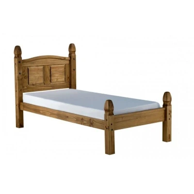 General description The Corona 3'0" Low Foot End Bed Frame is expertly crafted from solid pine and hand waxed to enhance its natural grain. This single bed combines outstanding value with a distinctive Mexican styling, featuring black metal fittings that add a warm rustic country charm, making it a perfect addition to any bedroom. Technical specifications Height: 116 cm Width: 97 cm Depth: 201 cm Installation The item is supplied flat packed for easy home assembly, complete with step-by-step instructions.
