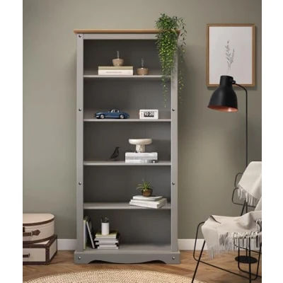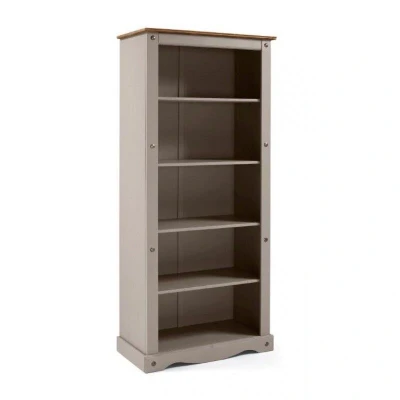 General description The Corona Grey Wax Large Bookcase features a subtle grey wash body that highlights the natural grains and textures of the solid pine wood. This bookcase combines a modern twist with classic design elements, retaining the beloved characteristics of the Corona range. It is expertly crafted and hand-waxed to protect and enhance the wood grain, making it a beautiful and functional addition to any home. Technical specifications Height: 180 cm Width: 82 cm Depth: 29 cm Installation Delivered flat packed for easy home assembly Includes step-by-step instructions Other information Features decorative metal fittings for distinctive Mexican styling Offers warm rustic country charm