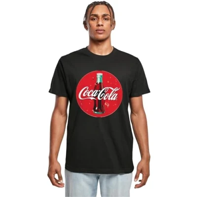 Merchcode Men's Mc891 coca Cola Bottle Logo Tee T Shirt, Black, S
