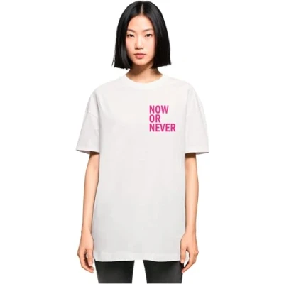 Merchcode Women's Mp0007297 ladies Now Or Never Oversized Boyfriend Tee T Shirt, White, XS