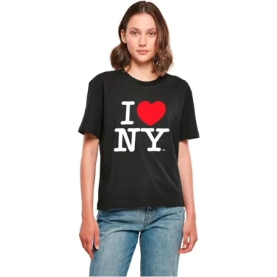 Merchcode Women's Mc1086 ladies I Love Ny Tee T Shirt, Black, S