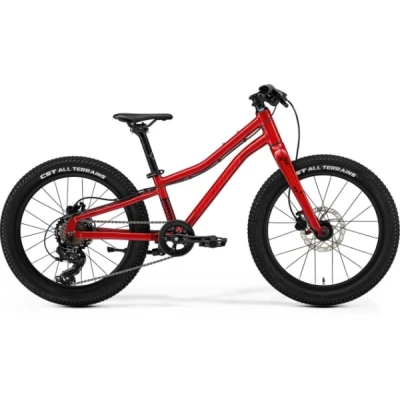 Designed for young riders, the Merida Matts J.20+ combines a lightweight aluminium frame, wide 2.4” tyres for extra grip and comfort, and Tektro hydraulic disc brakes for reliable stopping power. A 7-speed Shimano drivetrain with rapid-fire shifters makes gear changes easy, while the adjustable flip-flop stem helps the bike grow with your child.Key FeaturesFrame: 6061 aluminium, lightweight and durable, replaceable dropoutFork: Rigid aluminium, designed for lightweight performanceDrivetrain: Shimano 7-speed, SL-M315-7 shifter, RD-TY300 rear mechBrakes: Tektro M275 hydraulic disc brakes, 160/140 mm rotorsWheels: 20” aluminium rims, CST Jet 2.4” tyres for extra grip and comfortOther Standout Feature: Flip-flop stem and spacers for easy size adjustment as kids growFinance Option: Available with 0% APR financeThe Merida Matts J.20+ is built for fun, confidence, and adventure, offering young riders a well-balanced mix of lightweight performance and durability. The 6061 aluminium frame keeps things light and easy to handle, while the rigid aluminium fork saves weight over heavier suspension forks that often don’t work well for lighter riders.With wide 2.4” tyres, this bike provides added comfort, grip, and stability on different terrains, from tarmac to light trails. Running at lower pressures, the tyres help smooth out bumps, making it easier for kids to ride longer without discomfort.A Shimano 7-speed drivetrain keeps gear shifting simple and intuitive, with a rapid-fire shifter that’s easy for smaller hands to operate. The 28T chainring and 14-34T cassette offer a wide range of gears, helping kids tackle small hills and varied terrain with confidence.Braking is made easy with Tektro hydraulic disc brakes, offering better stopping power and control than traditional rim brakes, especially in wet or muddy conditions. With 160 mm rotors at the front and 140 mm at the rear, stopping is smooth and predictable.To help extend the bike’s lifespan as your child grows, Merida includes a flip-flop stem and stackable spacers, making it easy to adjust the fit over time. This means more riding before an upgrade is needed.Ideal for young riders ready to explore, build confidence, and have fun, the Merida Matts J.20+ is a well-equipped, durable bike designed to make every ride enjoyable.