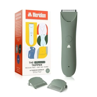 MERIDIAN Slimmer Trimmer, Pubic & Body Hair Bikini Removal, No Nicks, Razor Burn, Ingrowns, Ergonimic Design, Wet/Dry Tech, LED Spotlight, Sage