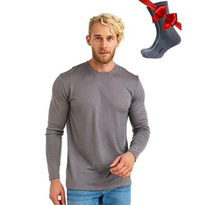 Lightweight: Mens Merino Base Layer Available in: Lightweight 165 g/m², Midweight 230-250 g/m², Heavyweight 320 g/m² and Merino Wool Hiking Socks ($ 21 Value) - Package includes Men's 165g/m² Merino Wool Base Layer Top Wool Socks. Cool Packaging! Makes a Great Gift! Super Soft & Comfortable – 100% Superfine 18.5 Micron Merino Wool Mens Base Layer provides all day comfort and no itch! Designed for daily wear without rubbing, overheating, or bunching of regular cotton. Moisture Wicking & Odor Resistant – Merino base layer mens wicking and odor-resistant properties allow it to absorb moisture better than any other fabric, keeping you dry and fresh. Breathable – For longer lasting wear, hand wash and lay flat to air dry. Men's Merino Wool Top regulates body temperature to keep you comfortable all year round. Zero Worries: Every Merino.tech Mens Merino Wool Base Layer we make is backed by our Merino.tech Promise - ensuring you're 100% happy with every Merino.tech purchase. For best results hand wash and lay flat to dry.