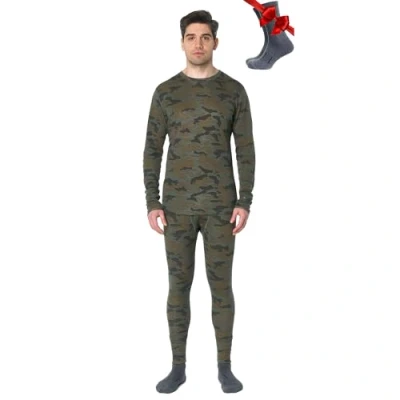 Merino.tech Merino Wool Base Layer Men Set Thermal Underwear Mens Top and Bottom Lightweight, Midweight, Heavyweight (Medium, 250 Camo)