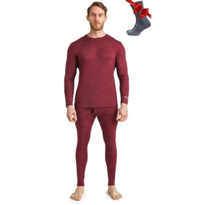 Merino.tech Merino Wool Base Layer Men Set Thermal Underwear Mens Top and Bottom Lightweight, Midweight, Heavyweight (Small, LITE 165 Burgundy)