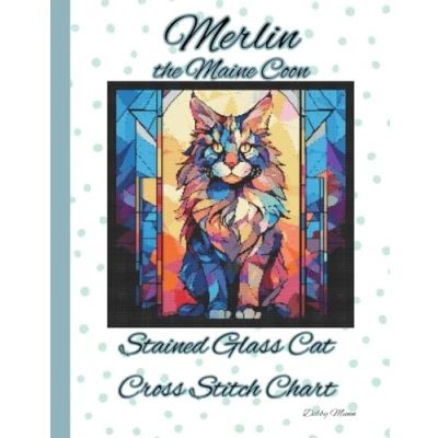 Merlin the Maine Coon: Stained Glass Cat Cross Stitch Chart
