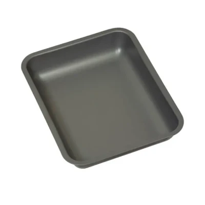 This Mermaid by Samuel Groves Hard Anodised Yorkshire Pudding Dish, is the ideal dish for creating family size Yorkshire Puddings or tasty Toad in the Hole.This tray is equally effective for use in roasting and baking.Twice as hard as stainless steel, this pan is scratch resistant, will never peel, flake or blist and is supplied with a lifetime guarantee.Suitable for hand washing.