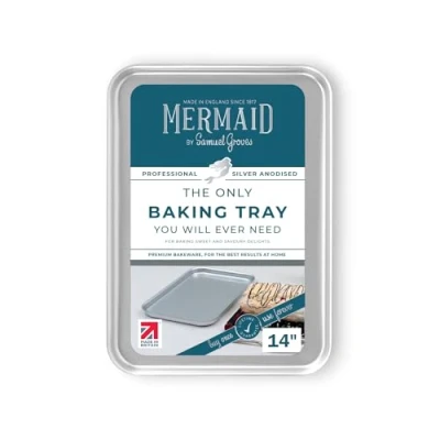 Harts of SturThis Mermaid by Samuel Groves Silver Anodised 14 Baking Tray is heavy-duty yet lightweight and robust, designed to not blister or peel. Designed for deneal roasting or baking, this baking tray is oven safe up to 230°C and is suitable for use under the grill. Recommended for use with silicone or heat resistant plastic tools.Suitable for hand washing. This baking tray is Made in Britain and is supplied with a lifetime guarantee.