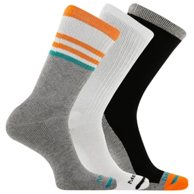 Merrell Men's and Women's Cushioned Cotton Socks 3 Pair Pack Unisex Breathable Mesh Comfort Zones, Crew Orange Assorted, Medium Large