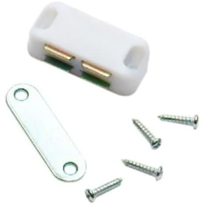 Merriway BH00073 (12 Pcs) White Magnetic Cupboard Door Catches, Medium 42 x 20mm (1.1/2 inch 3/4 inch) with Single Plate and Screws, 6 kg (13lb) Pull Strength Pack of 12 Pieces