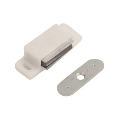 Merriway® BH00396 (4 Pcs) Heavy Duty Magnetic Cupboard Cabinet Door Catches, White Small 43 x 18 mm with Single Plate and Screws, 6 kg Pull Strength Pack of 4 Pieces