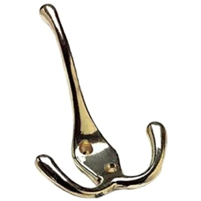 Pack of 1 x Triple Hat and Coat Hook Brass plated metal Polished brass finish Complete with screws Manufacturer: Merriway, Manufacturer: Merriway