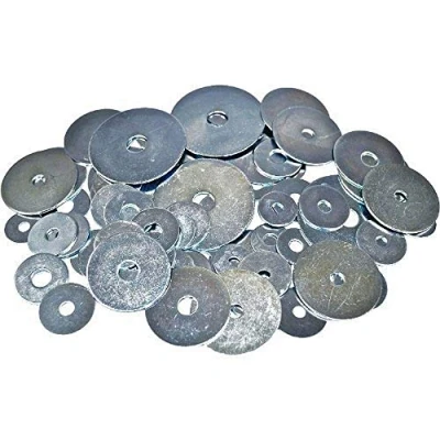 Merriway BH00910 (70 Pcs) Workshop Assortment of Penny Repair Mudguard Washers with Large Flange, Silver Packs 70 Pieces
