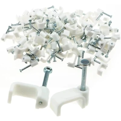 Merriway BH02263 Twin and Earth Flat Cable Clip, White 2.5 mm, 10 mm Width for Ethernet Internet Leads , Pack of 100 Piece