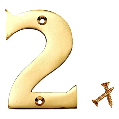 Merriway BH04228 Polished and Lacquered Solid Brass Screw On House Flat Gate Post Numeral 75 mm (3 Inch) Number 2
