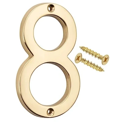 Merriway BH04234 Polished and Lacquered Solid Brass Screw On House Flat Gate Post Numeral 75 mm (3 Inch) Number 8