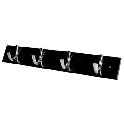 Merriway BH04670 Small Rib Robe Hook x 4 Bright Chrome on Black Wood