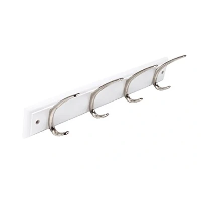 Merriway BH04701 Large Rib Hat and Coat x 4 Polished Chrome Hooks on White Wood Bright