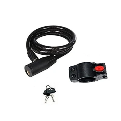 Merriway BH04730 8mm x 1M (5/16 inch 39 inch) Spiral Bicycle Lock and Keys with Mounting Bracket Black