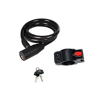 Merriway BH04731 10mm x 1M (3/8 inch 39 inch) Spiral Bicycle Lock and Keys with Mounting Bracket Black