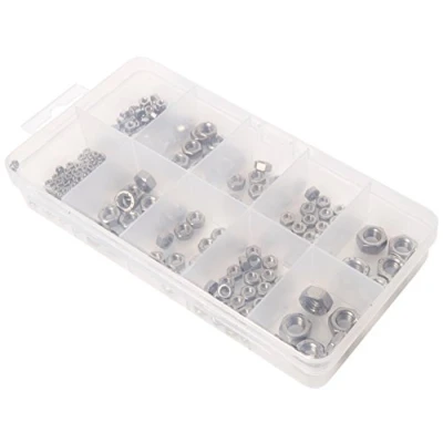 An assortment of stainless steel hex nuts in a 10 compartment carry case. Sturdy clear plastic case with snap close & hanging tab Case dimensions: 19.5cm x 10cm x 3cm For sizes and finish - see description Manufacturer: Merriway, Weight: 0.51147244784 Pounds, Manufacturer: Merriway