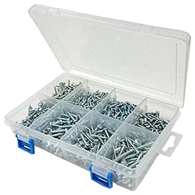 An assortment of BZP slotted pan head self tapping screws in a 8 compartment carry case. Sturdy clear plastic case with snap close & hanging tab Case dimensions: 22cm x 14.5cm x 5cm For sizes and finish - see description Manufacturer: Merriway, Manufacturer: Merriway