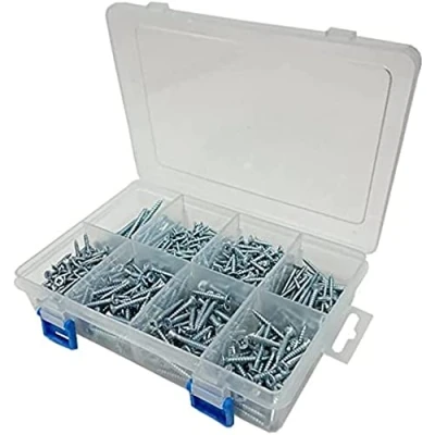 Merriway BH06605 (780 Pcs) Assortment of BZP Pozi CSK Head Twin Thread Woodscrews in a 8 Compartment Carry Case Pack 780 Pieces