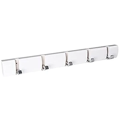 Retractable Satin Nickel Hooks 5 Hooks on a White Painted Wooden Rail Complete with fixing screws Pack contains 1 x Wooden rail with 5 hooks. Manufacturer: Merriway, Manufacturer: Merriway